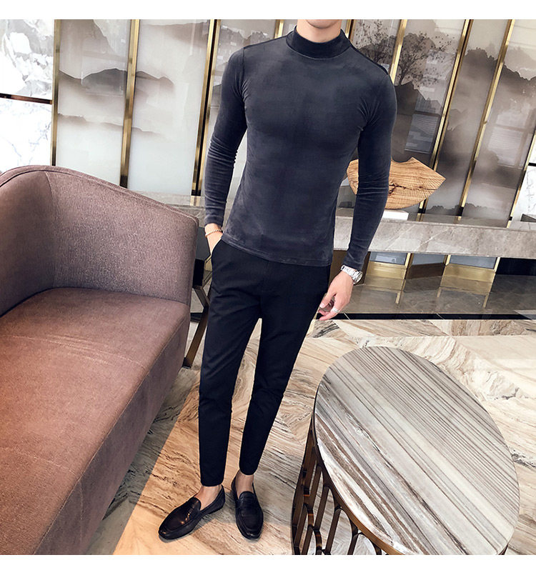 Мужская Золотая Бархатная Осенняя рубашка в Корейском стиле