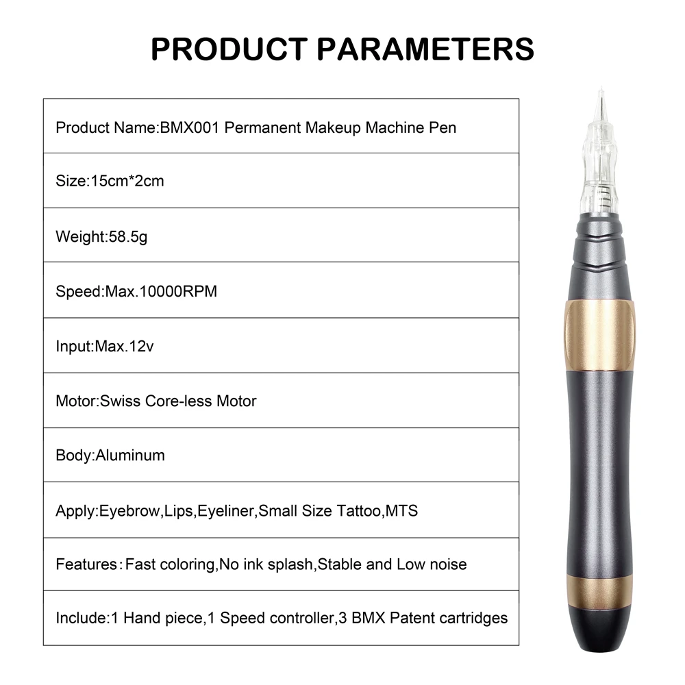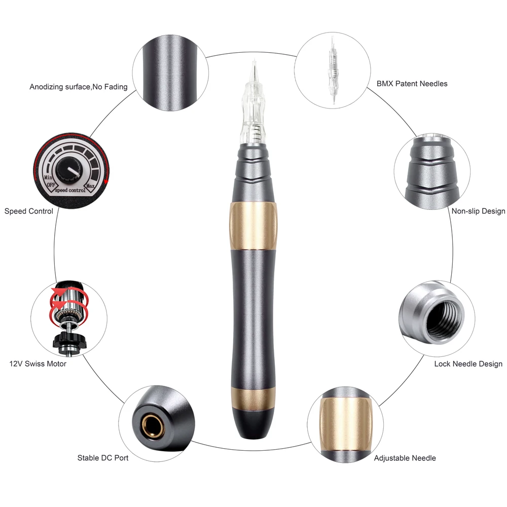 Тип: наконечник для тату-машинок Материал: нержавеющая сталь Тип пистолета: электрический Место происхождения: Хунань, Китай (материк) Название продукта: цифровая машина для перманентного макияжа Применение: Подводка для бровей Двигатель: Dia.16mm мотор Доступные иглы: RL, RS, F , Mg Скорость ручки: Макс. 10000 об/мин Вход пера: Макс. 12v Мотор ручки: мощный двигатель без сердечника Корпус ручки: алюминиевый сплав Игла: игла для винтового картриджа Постоянное применение микроиглы -Подтяжка кожи, лифтинг, омоложение -Лечение акне шрамов и заживление ран -Улучшение морщин и морщин -Доступные размеры: RL/RS/F/SF/12P мезотерапия иглы -Диаметр иглы: 0,3 мм