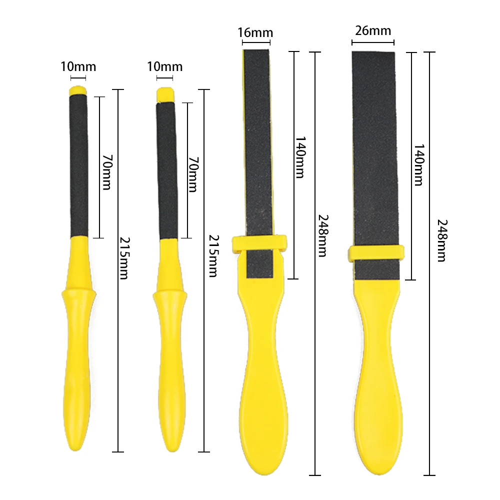 Шлифовальные палочки с формованными пластиковыми ручками поставляются в 4 различных типах Оба упакованы в полосу наждачной бумаги Посылка включает в себя: 4 * Пластиковые шлифовальные палочки также упакованы с наждачной бумагой Удобный инструмент, пригодный для шлифовки участков возле других поверхностей, которые вы не хотите повредить. Отлично подходит для точной шлифовки в небольших областях и попадания в углы