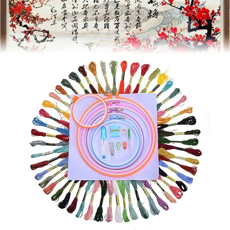 Крестом ремесло набор инструментов "сделай сам" с вышивкой стартер цветная нить ткань пяльцы ножницы, наперсток наборUS $20,36