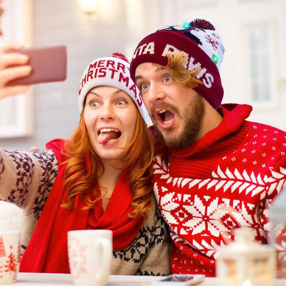 Теплый светодиодный светильник, хлопковая Рождественская шапка, вязаная Шапочка, шапка для детей и взрослых, Детская кепка, украшение для рождественской вечеринки, новогодние подарки