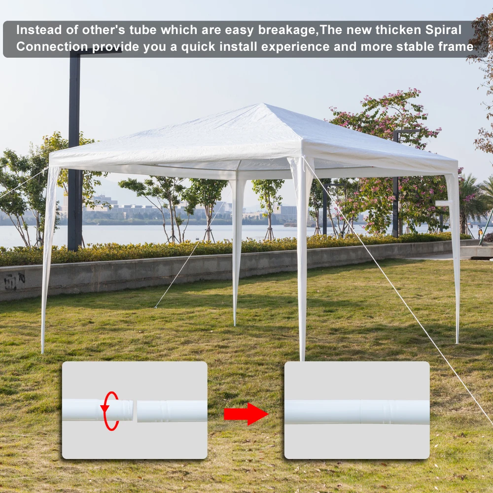 _______________________________________________ 10х10 с 4 стороны Технические характеристики: 1. Материал: железная трубка и ткань из полиэтиленовой ткани 2. Цвет: белый 3. Трубка: Φ24/18/0, 45/0, 45 мм 4. Материал верхней ткани: 90 г/м2 PE 5. Размеры: (10x10x8,5) " / (300x300x260) см Размер упаковки (Д х Ш х В): 6. Вес: 18,74 фунтов/8,5 кг 7. Водонепроницаемость: Да 8. Структура палатки: одноместная палатка 9. Высота сбоку: 79 дюймов/200 см 10. Высота топа: 100,39 дюйма/255 СМ 11. Подходит для: дома, свадьбы, вечерние, парковочный навес