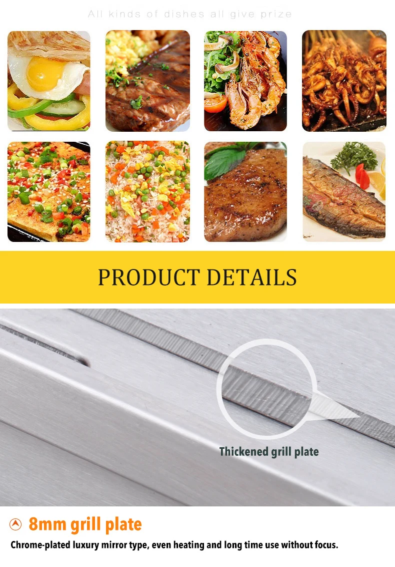 Электрическая плоская сковорода Модель: PL-820 Размер изделия: 74,5*48,5*21 см Размер упаковки: 77*52,5*23 см Размер пластины: 73*40 см Вес: 21 кг Мощность: 4,4 квт Напряжение: 220 В/50 Гц Температура: 50-300 градусов