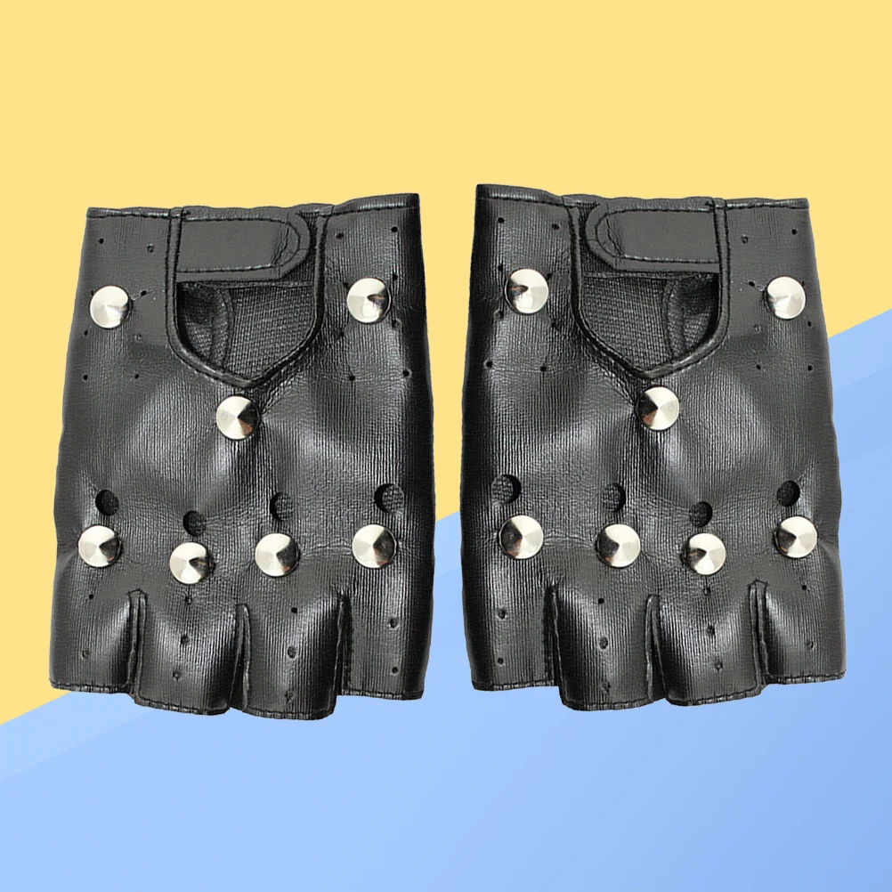 3 пары заклепки на полпальца перчатки панк-рок стиль без пальцев кожаные перчатки (взрослые круглые гвоздь)