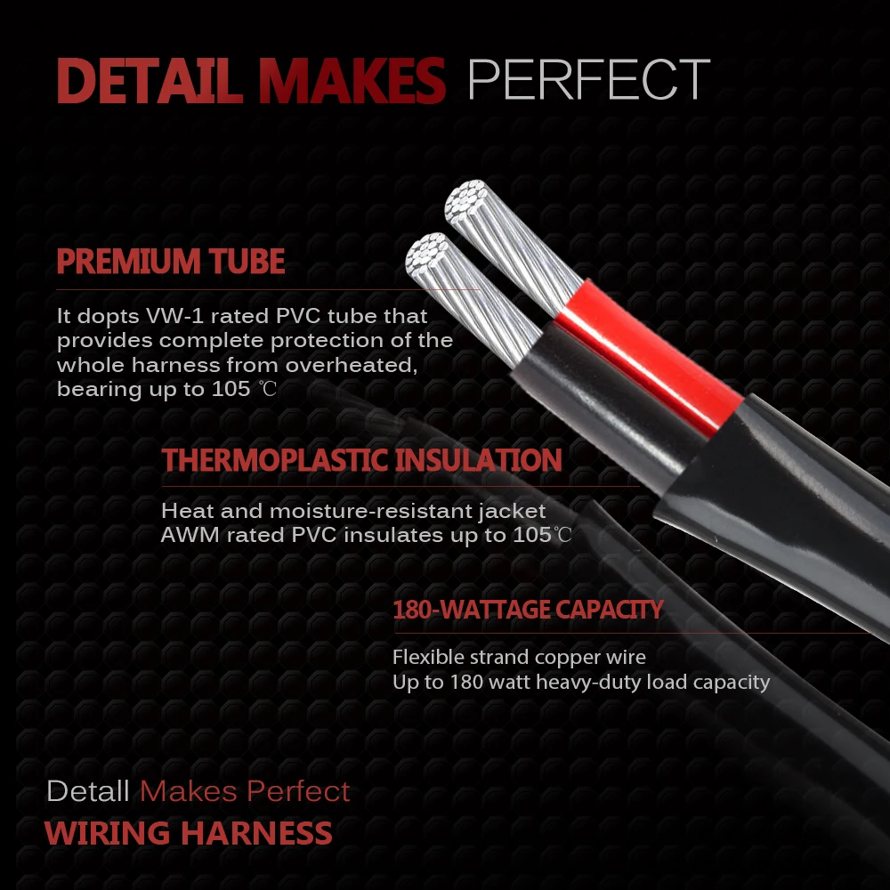 Светильник мощностью более 180 Вт, мы рекомендуем вам выбрать для лучшей работы нашу проводку MICTUNING Heavy Duty(HD).