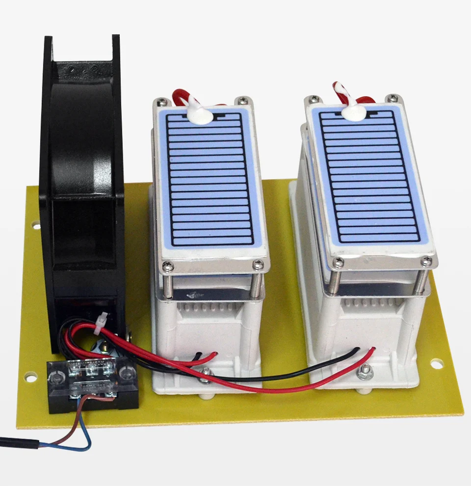 Выход озона: 20 г Входное напряжение: ac220в Высокое напряжение: 3.1kv-3.5kv Потребляемая мощность: 200 Вт Подача газа: сухой воздух или кислород Метод генерации озона: разряд короны Метод охлаждения: воздушное охлаждение окружающей среды Размер изделия: 24*15*13 см