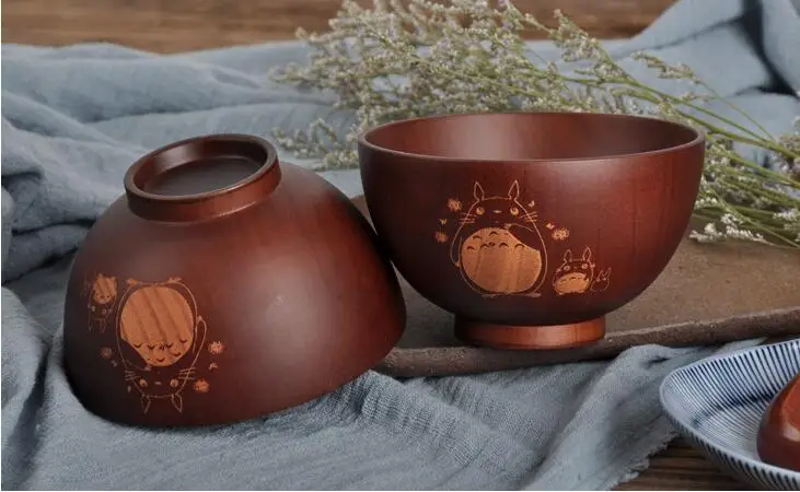 Японский стиль Тоторо деревянные миски мультфильм расписанная вручную посуда