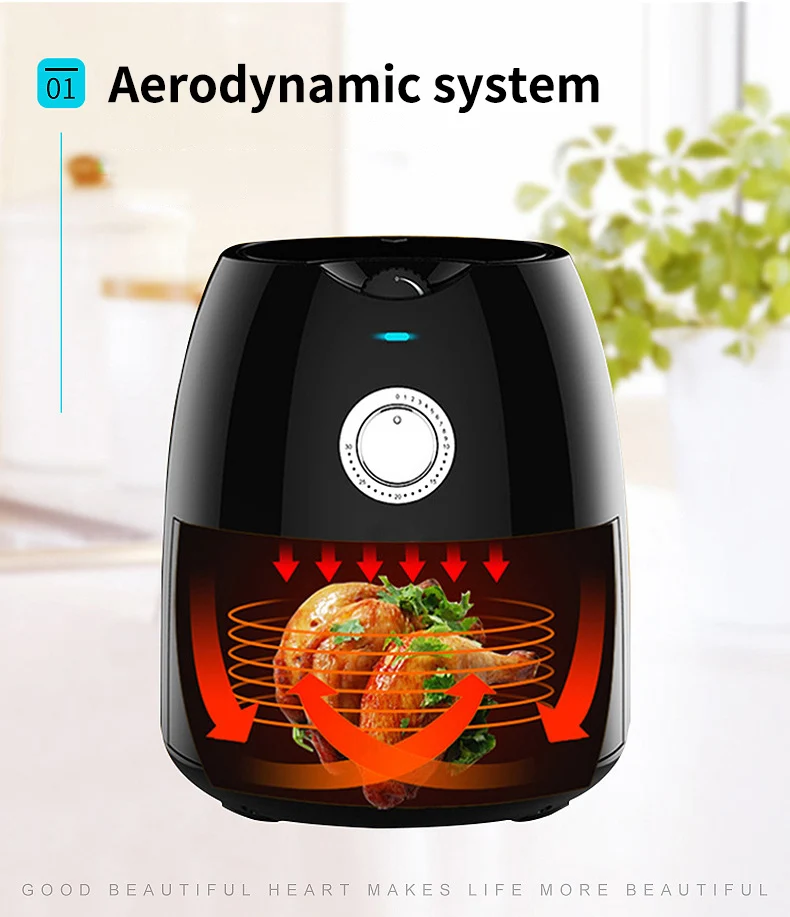 Воздушная фритюрница Модель: KZL-289 Мощность: 1300 Вт Напряжение: 220 В/50 Гц Емкость: 2,5л Вес: 4,2 кг Внутренний материал: антипригарный Размер изделия: 26*26*30 см Размер упаковки: 336*336*357 мм