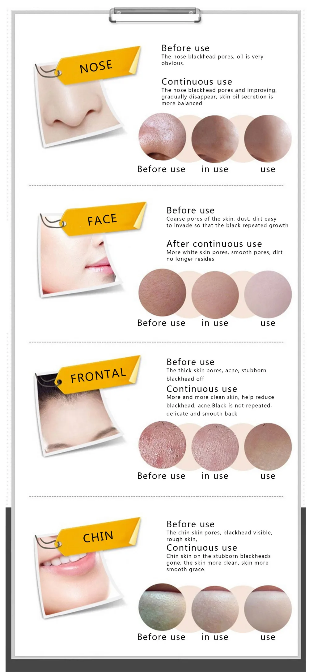 1. После очистки, возьмите подходящий продукт равномерно вокруг носа, подождите 15-20 минут, пока полностью высохнет.