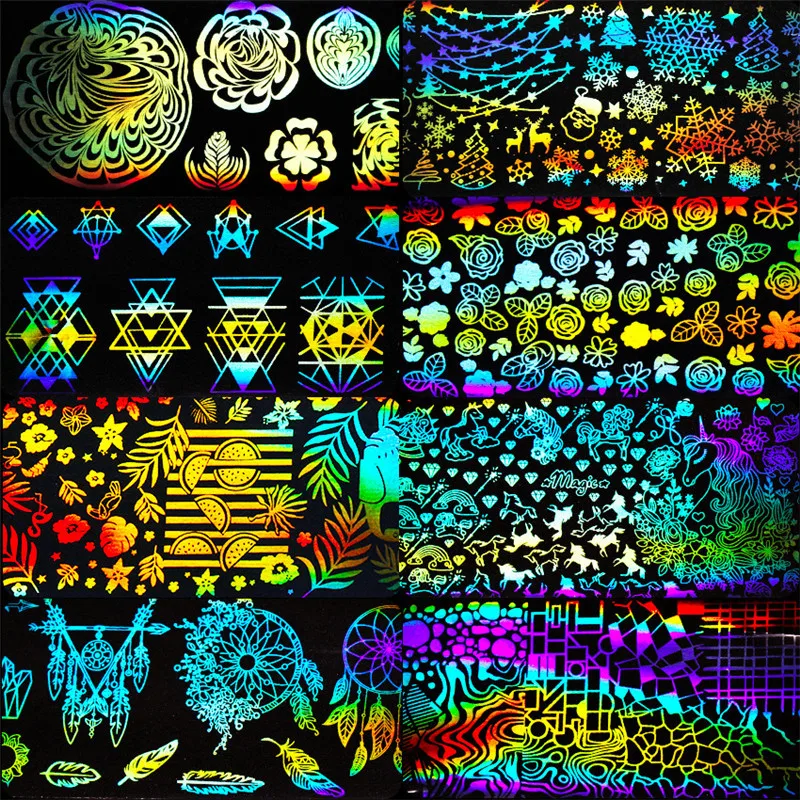 8 стилей ногтей Stikers украшения для ногтей Лазерная переводная Фольга наклейка УФ гель лак Декор Маникюр наклейки 4x20cm
