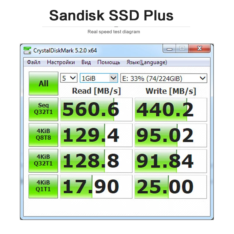 Емкость: 120 ГБ, 240 ГБ, 480 ГБ, 1 ТБ Далее. Скорость чтения: до 530 МБ/с./с ** Далее. Скорость записи: до 310 МБ/с./с ** Интерфейс: SATA Revision 3,0 (6 ГБ/сек.) Размеры: 2,75*3,96*0,28 дюйма (69,85 мм * 100,5 мм * 7,0 мм) Интерфейс: SATA Revision 3,0 (6 ГБ/сек.) Рабочая температура: 32 °F до 158 °F (от 0 °C до 70 °C) Удар: Устойчивость до 1500 г Вибрация: 5 gRMS, 10-2000 Гц/4,9 gRMS, 7-800 Гц Комплектация: SanDisk SSD Plus с розничной упаковкой * 1 Примерная полезная емкость: 120 ГБ = Приблизительно 110 ГБ ~ 114 ГБ 240 ГБ = Приблизительно 220 ГБ ~ 228 ГБ 480 ГБ = Приблизительно 440 ГБ ~ 456 ГБ 1 ТБ = примерно 920 ГБ ~ 944 ГБ Фактическое полезное пространство может быть меньше, чем общая емкость хранения, указанная в таблице, из-за десятичного измерения, используемого для представления полезного объема SSD Тест SSD на базе Windows 7/8, выше Windows 8, может быть проблема совместимости. Производительность может варьироваться в зависимости от емкости SSD, аппаратной тестовой платформы, тестового программного обеспечения, операционной системы и других переменных системы. (Заводская конструкция: 1 Гб = 1000 Мб; Компьютерная конструкция: 1 ГБ = 1024 МБ) Пожалуйста, проверьте с ATTO, все наши скорости основаны на ATTO Информация о продукте или обновление не вовремя, отдайте приоритет заводской доставке Экструзия и повреждение упаковки длительным международным транспортом не влияет на использование продукта является нормальным. Раскрытия ** На основе внутреннего тестирования производительность может варьироваться в зависимости от емкости диска, хост-устройства, ОС и приложения. 1 Мб = 1000000 байт. 1. По сравнению с жестким диском SATA 5400 ”на 2,5 об/мин. Основываясь на данных спецификациях и внутренних тестах бенчмаркинга с использованием результатов PCMark Vantage. 2. Ударопрочный (до 1500 г) и вибростойкий (5 ГРМ, 10-2000 Гц/4,9 ГРМ, 7-800 Гц), температура (от 0 ℃ до 70 ℃) 3. Требуется загрузка с http://www.sandisk.com/ssdswap/download. Ограничьте время использования одной системы.