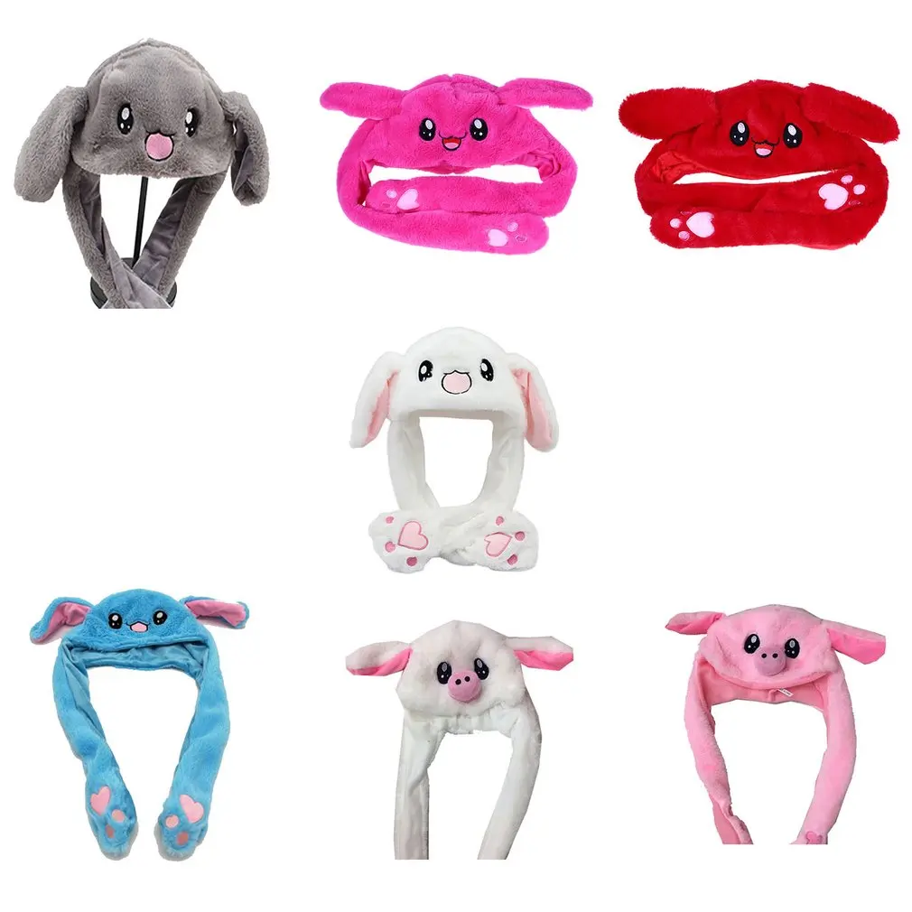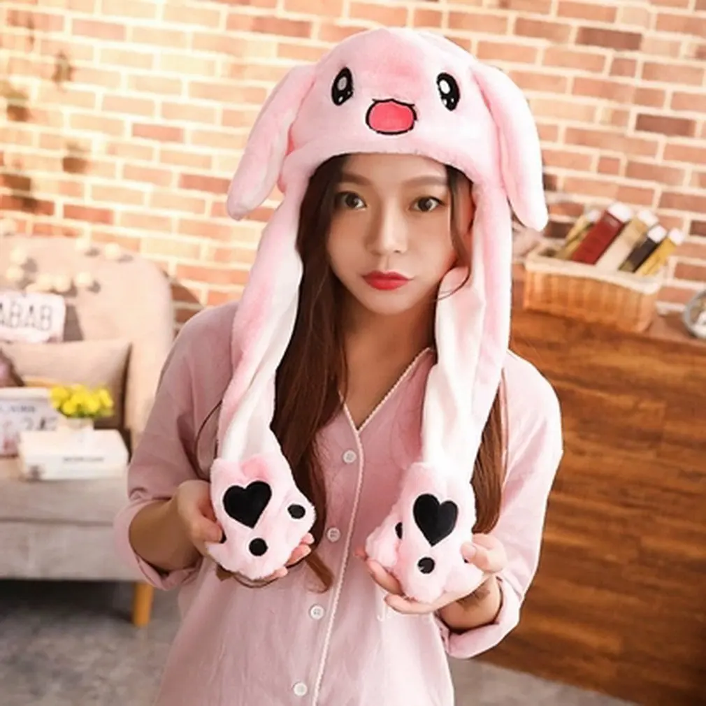 Плюшевая шапка с заячьими ушками, забавная ручная защелкивающаяся подушка безопасности, мягкая Магнитная шапка с регулируемыми длинными ушками, милая шапка с заячьими ушками в подарок