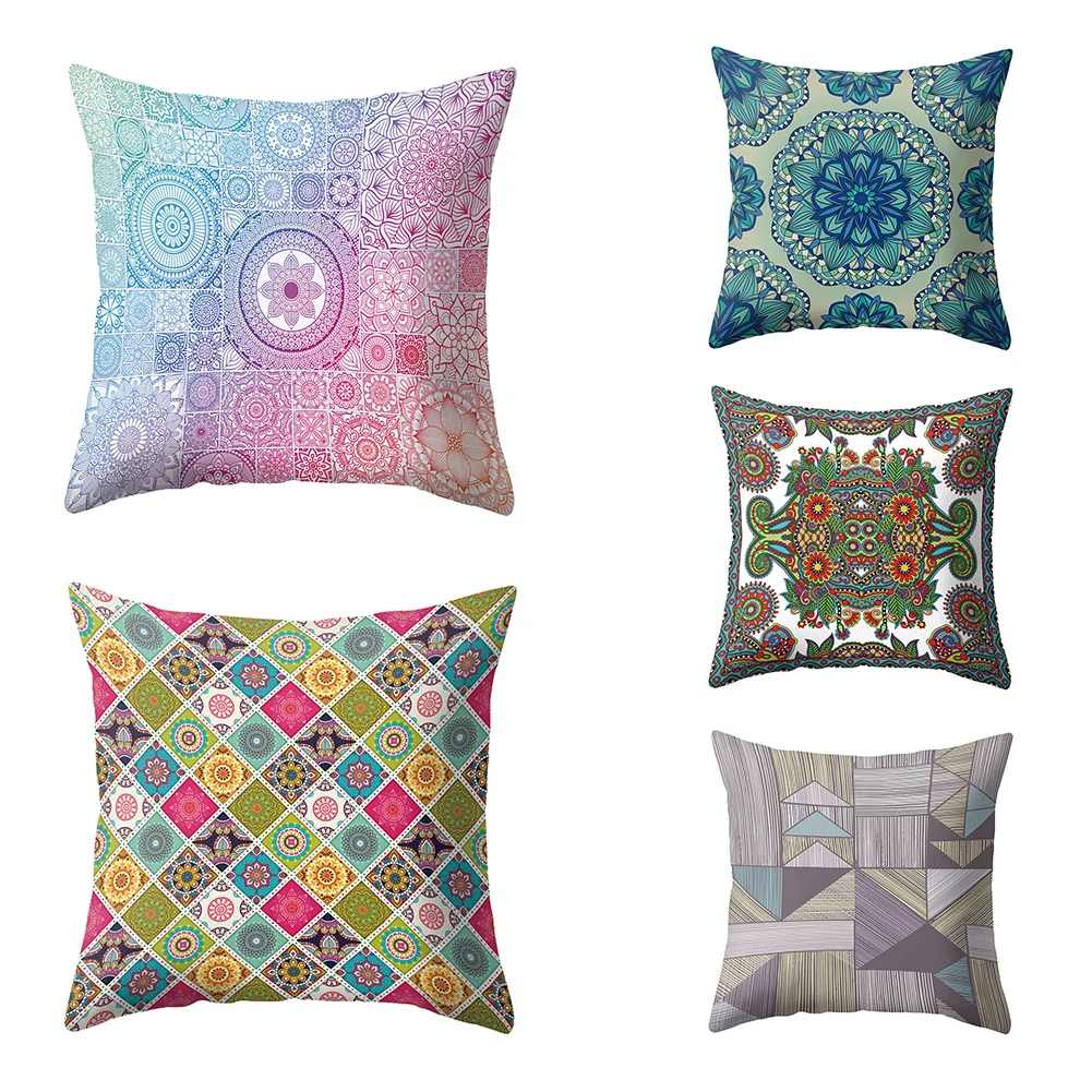 Наволочка с цветочным или геометрическим принтом в стиле ретро, красивая и уникальная.