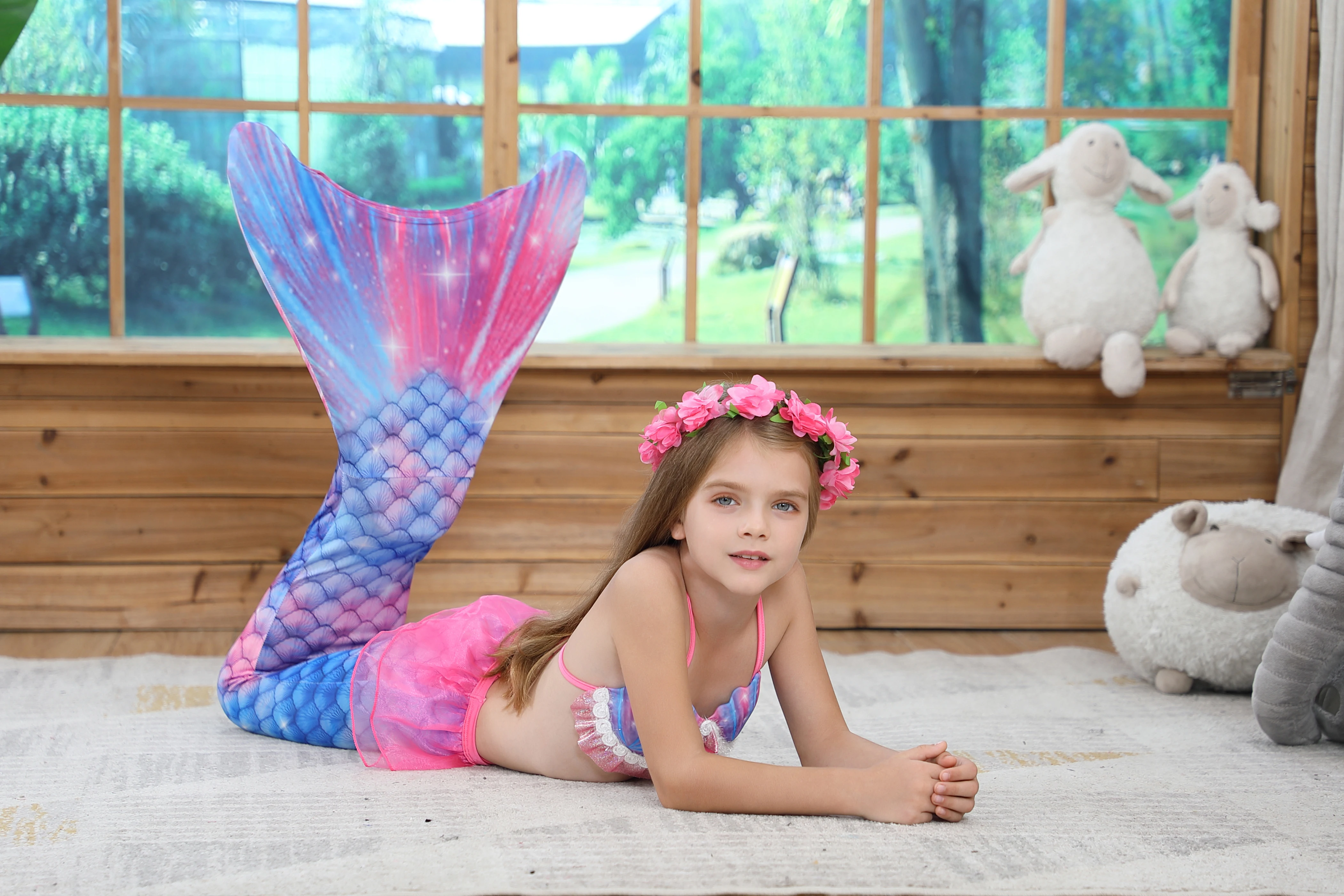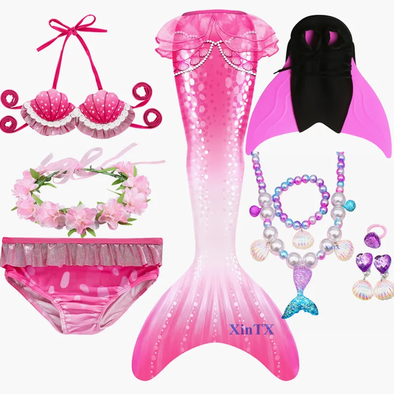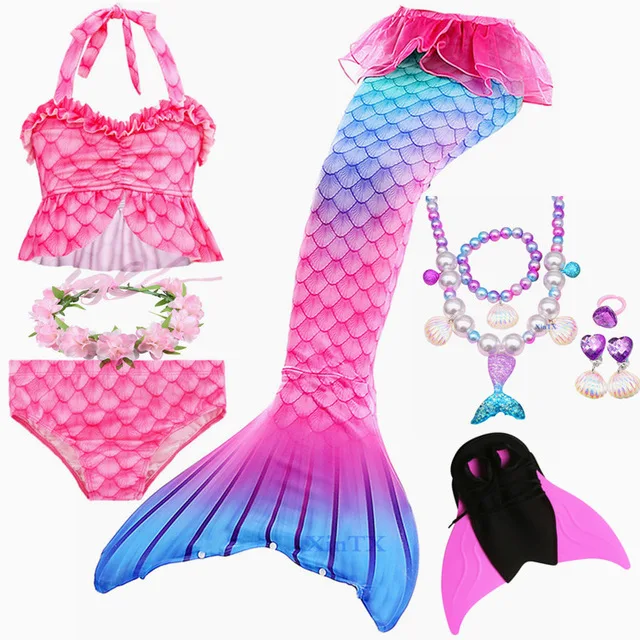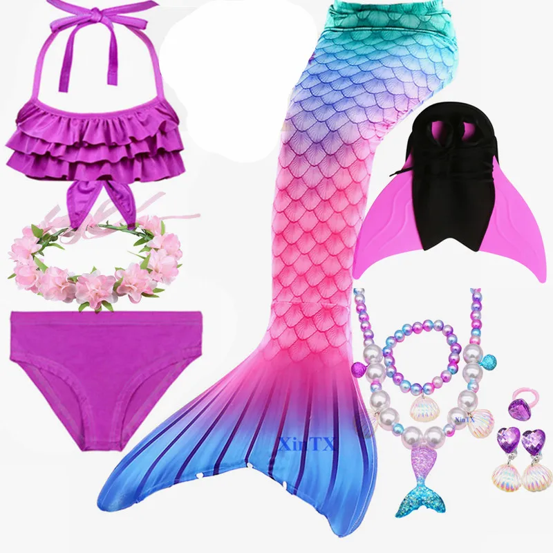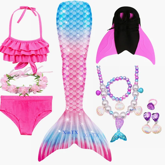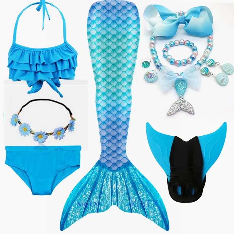 Посылка 3:1 * хвост русалки + 1 * бюстгальтер + 1 * шорты + 1 * монофин + 1 * очки + 1 * ожерелье + 1 * гирлянда или Корона