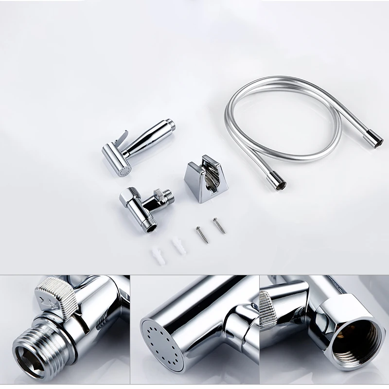 Набор: хромированная латунная пушка брызга, хром душевой шланг, хром-цветный пластический душ ручной сиденья + нержавеющая сталь Крепежная пластина