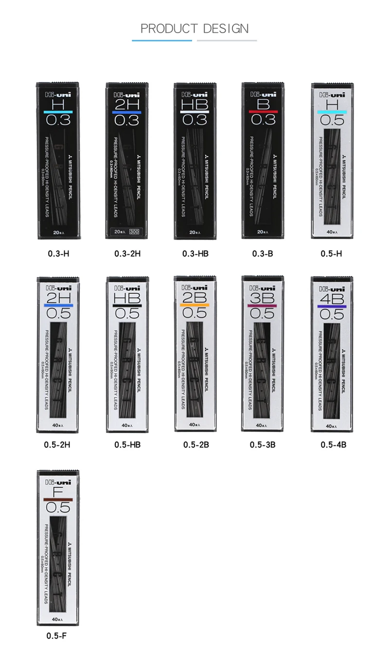Япония UNI Hi-UNI05-300 автоматический карандаш заправка ядро гладкая заправка не легко сломать 0,3 | 0,5 мм