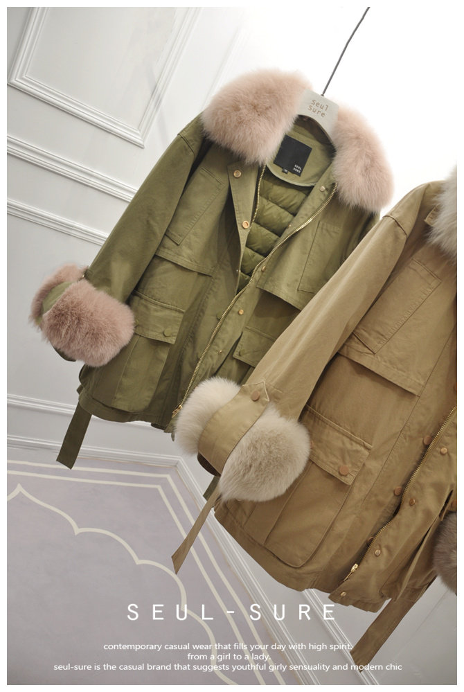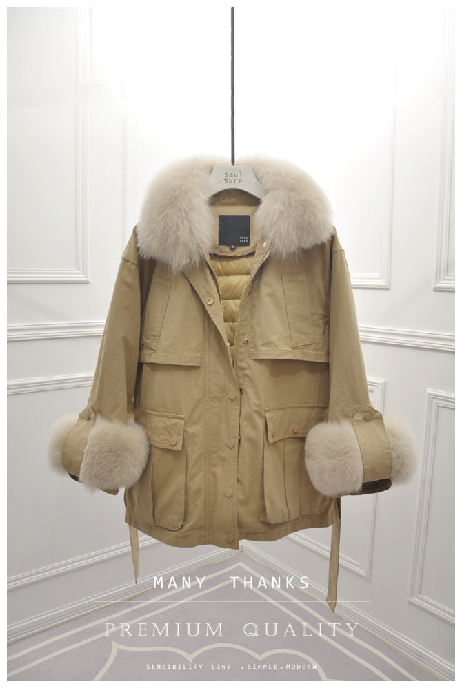 Материал:Натуральный мех енота меховой воротник+Утка вниз Iinner