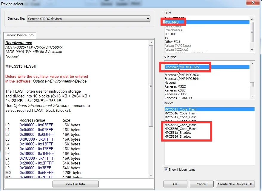 AUTH-0015 авторизация MPC5xx (в зависимости от устройства программа автоматически обнаруживает тип устройства MPC5xx, M95xxx, флэш-память, внешняя вспышка и размер памяти конфигурации)