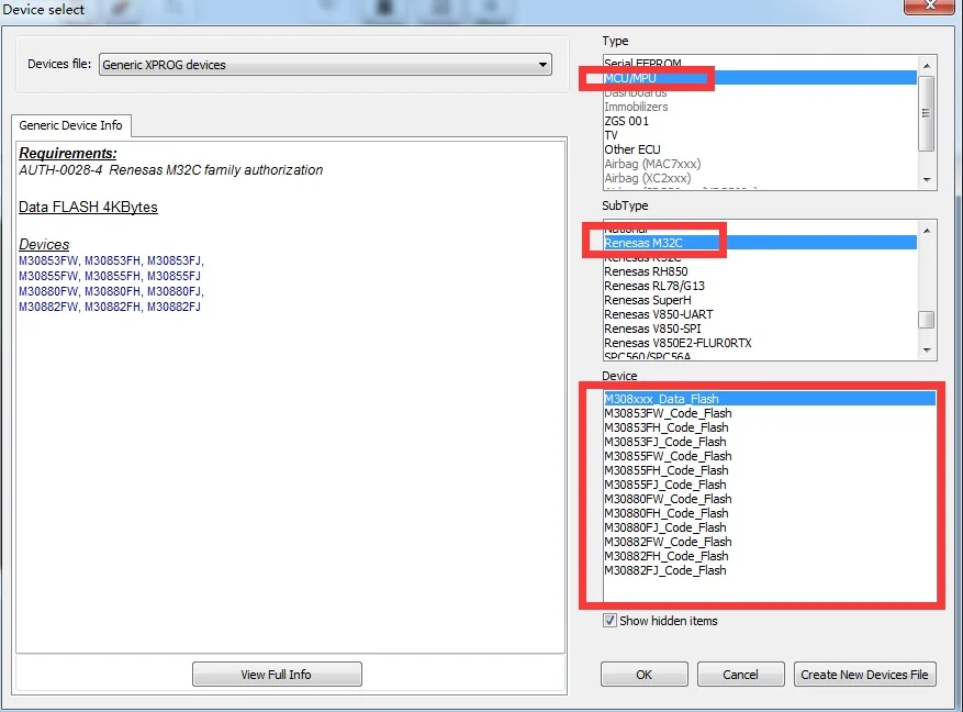 1. XPROG V6.12 dongle не совместим со старой версией Xprog.2. Пожалуйста, закройте все антивирусное программное обеспечение в вашем компьютере, потому что антивирусное программное обеспечение уничтожит драйвер Xprog V6.12.3. Отключите Интернет. В противном случае Интернет может повредить оборудование XPROG.4. Удалите все старые версии программного обеспечения XPROG перед установкой программного обеспечения V6.12, потому что оборудование XPROG V6.12 не совместимо с другим программным обеспечением версии XPROG.5.Никогда не пытайтесь обновить его, Оборудование будет повреждено, если вы попытайтесь обновить его онлайн.Установите Обратите внимание:XPROG-M V6.12 требуется система windows, как указано ниже:1. Windows XP 32 бит или windows 7 64 бит требуется, все патчи программного обеспечения для системы windows должны быть установлены уже и windows исправно работает хорошо...2. Система windows должна быть с двумя разделами (за исключением CD ROM.)3. Не может работать с Виртуальным жестким диском.XPROG Box 6,12 Этапы установки:1. Нажмите на файл «installation.reg», чтобы получить информацию о файле в regedit.2. Установите файл "AdbeRdr11000_zh_CN.exe", это необходимо, иначе программное обеспечение Xprog не запустится.3. Подключите основной интерфейс Xprog к компьютеру, установите usb-драйвер.4. Скопируйте папка "XPROG-BOX6.12" на рабочий стол, откройте ее и выполните "xprogdesktop.exe", затем откройте программное обеспечение.Разрешения XPROG V6.12 включают:AUTH-0001 для Motorola HC05 family authorization (позволяет читать/записывать EEPROM)AUTH-0002 для Motorola HC08 family authorization (позволяет читать/записывать EEPROM)AUTH-0003 для Motorola HC11 family authorization (позволяет читать/записывать EEPROM)AUTH-0004 для Motorola HC12, 9S12 family authorization (позволяет читать/записывать EEPROM и флэш-память)AUTH-0005 для техасских инструментов TMS370/TMS374 авторизация семьи (позволяет читать/записывать EEPROM)AUTH-0006 для Motorola HC05Bxx и HC05Xxx family bypass авторизация безопасности (позволяет считывать/записывать защищенные EEPROM и флэш-память)AUTH-0007 ST M35080 авторизация. Устройство чтения/записи/стирания в состоянии доставки.AUTH-0008 для BMW EWS3 авторизацияAUTH-0009 авторизация семьи ATMEGA (позволяет читать/записывать EEPROM и флэш-память)AUTH-0010 для авторизации MB ZGS001AUTH-0011 для Motorola HC11EA9/E9 bypass безопасности авторизация (позволяет обходить бит безопасности и читать EEPROM и RAM память)AUTH-0012 национальная авторизация CR16 (позволяет читать/записывать память EEPROM)AUTH-0014 ST7, авторизация семьи ST10 (позволяет считывать/записывать внутреннюю вспышку)AUTH-0015 авторизация MPC5xx (в зависимости от устройства программа автоматически обнаруживает тип устройства MPC5xx, M95xxx, флэш-память, внешняя вспышка и размер памяти конфигурации)AUTH-0018 для Motorola HC12, HC912, MC9S12, MC9S12X байпасная авторизация безопасности (позволяет считывать/записывать защищенные EEPROM и флэш-память)AUTH-0020 для ARM (микроны, ...) Авторизация семьи (позволяет считывать/записывать внутреннюю вспышку и внешнюю последовательную EEPROM)AUTH-0021 для ARM (микроны, ...) Авторизация безопасности в обход семьи (позволяет считывать/записывать защищенные и незащищенные внутренние вспышки и внешние последовательные EEPROM, просмотр/изменение пробега, номер шасси (вин), серийный номер и пин-код).AUTH-0023-1 MAC7xxxAUTH-0023-2 XC23xxAUTH-0024-1 MC9S12CxxAUTH-0024-2 MC9S12XEAUTH-0024-3 9S12XE безопасностиAUTH-0024-4 MC9S12HA/HY/PAUTH-0025-1 MPC/SPC5xxx уполномоченный 2016/3/13AUTH-0027-1 HC(S)908 авторизованное обновление 2016/3/13AUTH-0027-2 HC(S)908 sercurity авторизованный 2016/3/13AUTH-0028-1 для Renesas V850 уполномоченный 2017/10/9AUTH-0028-2 для авторизованных 2017/10/9 Renesas SuperHAUTH-0028-3 для Renesas RL78 авторизованны
