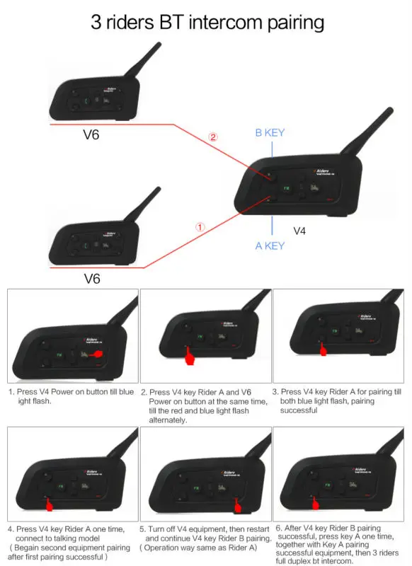 Bluetooth гарнитура для внутренней связи с дальностью разговора до 1200 метров Полный дуплекс беспроводной Bluetooth Handsfree Интерком commnunicate До 3 человек и разговор между ними одновременно V4C: fm-радио, никогда не будет скучно в течение неполного времени. С шумоподавлением DSP, вы можете четко слышать со скоростью до 120 км/ч Высококачественные аккумуляторы, 3 часа зарядки до полного и до 8 часов в режиме разговора С стерео bluetooth-гарнитурой, поддерживает стерео музыку/аудио навигацию с GPS, автоматический ответ на вызов. Ультразвуковое интегральное формование, лучшее водонепроницаемость, может использоваться в любую погоду. Хэндс-фри общения. Вы можете связаться с другими 3 людьми. Костюм для мотоциклетного шлема (полное лицо/Полулицо) Хорошо работает с рефери-гарнитурой для футбольного матча
