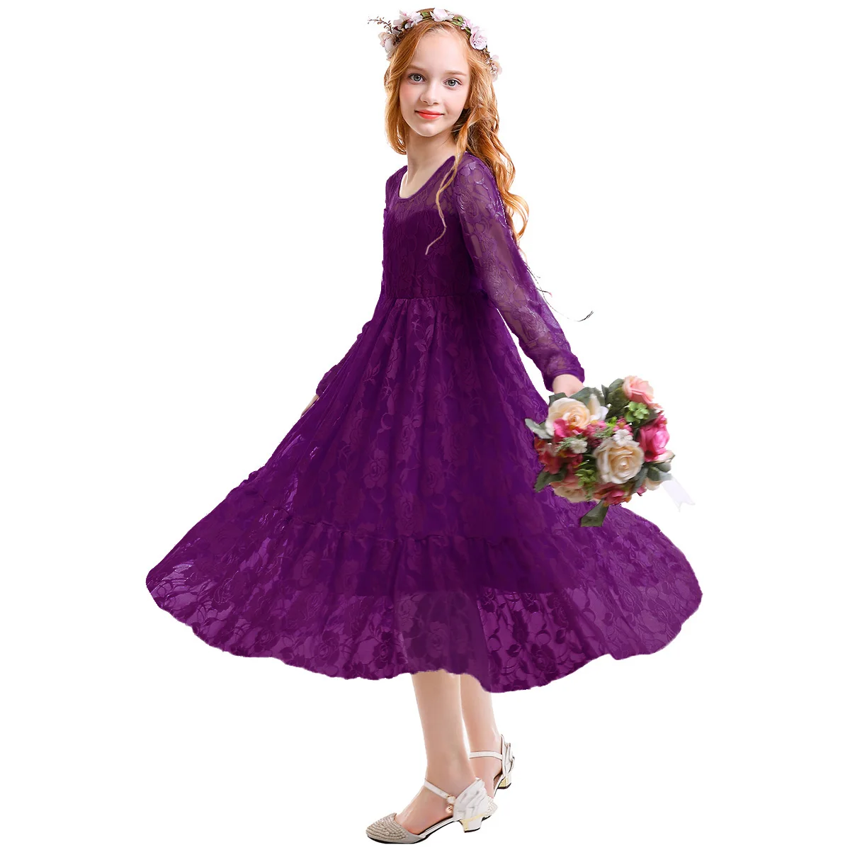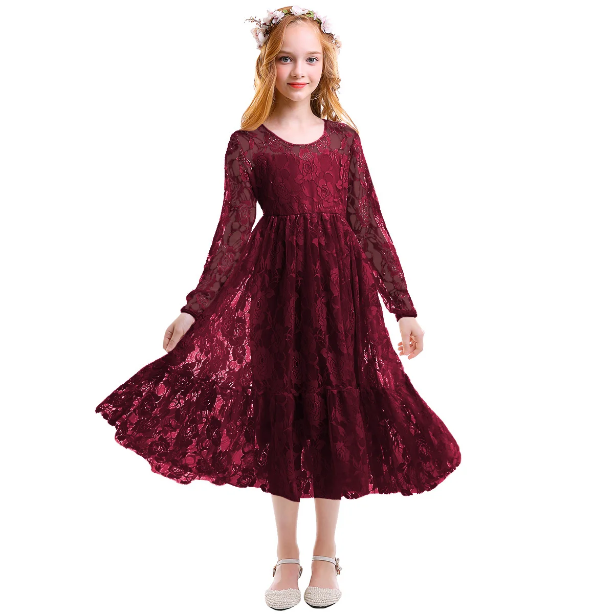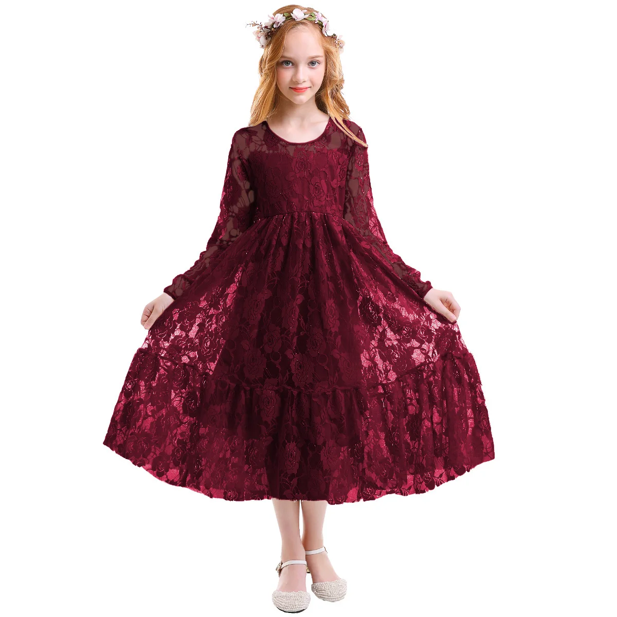 Элегантное и красивое кружевное платье с длинными рукавами и цветочным рисунком для девочек, доступно в 6 цветах.