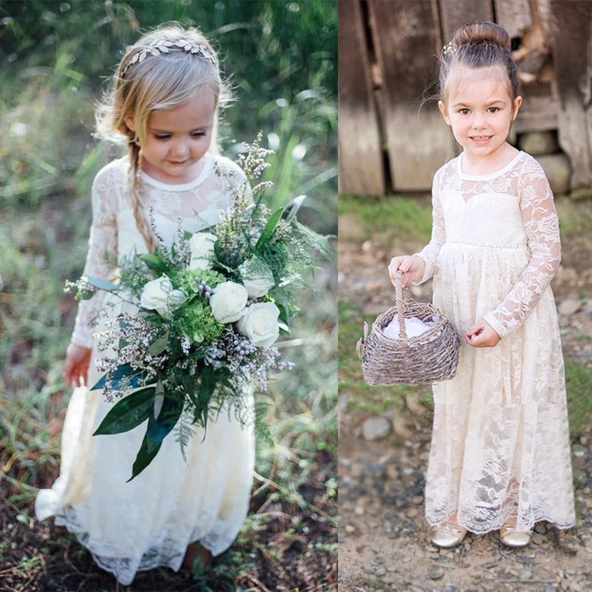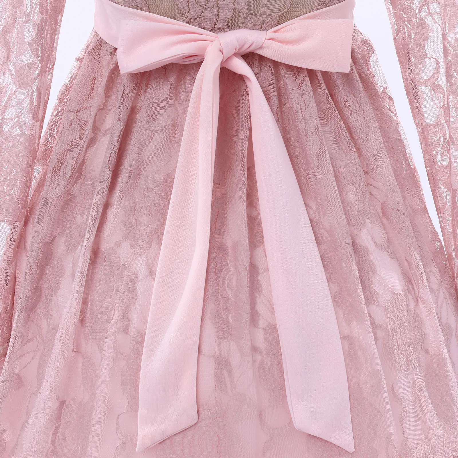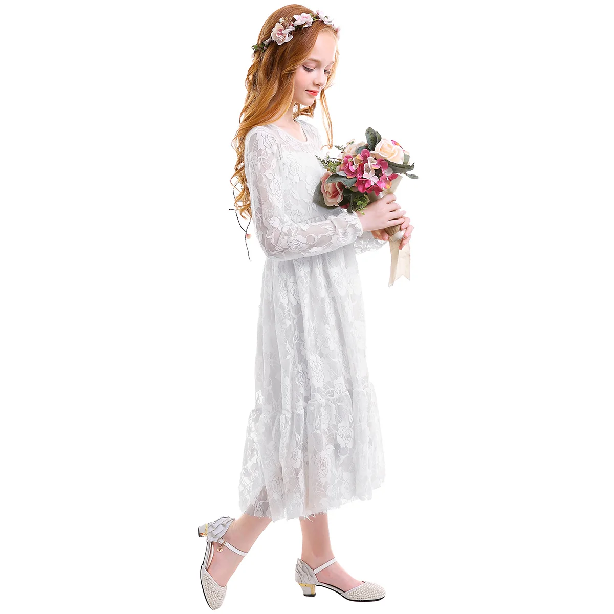 Элегантное и красивое кружевное платье с длинными рукавами и цветочным рисунком для девочек, доступно в 6 цветах.