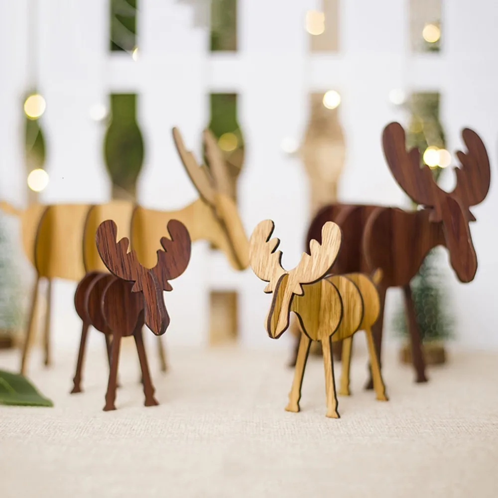 Деревянный Рождественский олень ручной работы, креативная натуральная древесина, украшение для дома, офиса, стола, Праздничный Рождественский подарок