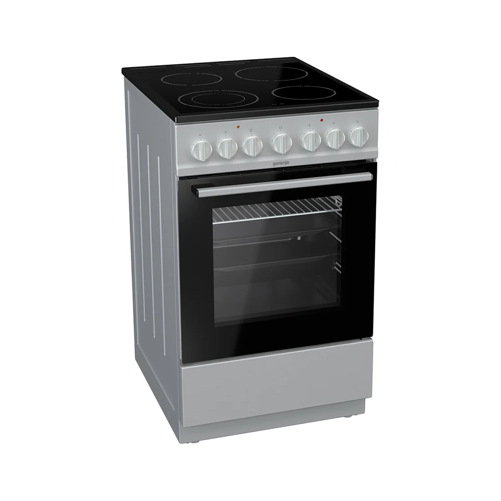 Тип Плита электрическая Объем духовки, л 74 Функции Гриль Мощность 850 Вт Материал рабочей поверхности Стеклокерамика Тип управления Механический Размер, см 50x85x59,4 Стекло дверцы духовки 3 слоя Телескопические направляющие Нет Цвет Серебристый Гарантия, мес 12ИЗОБРАЖЕНИЕ ИЗДЕЛИЯ