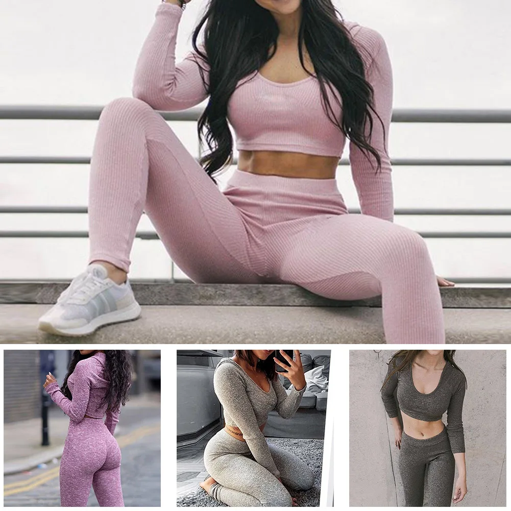 Женский комплект для йоги Keptfeet, спортивная одежда для фитнеса с длинным рукавом + штаны для бега, Обтягивающие Леггинсы для йоги и тренировок, спортивный костюм
