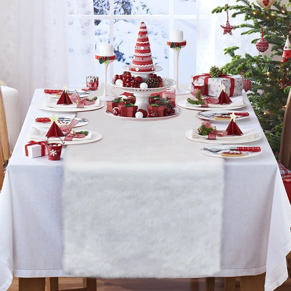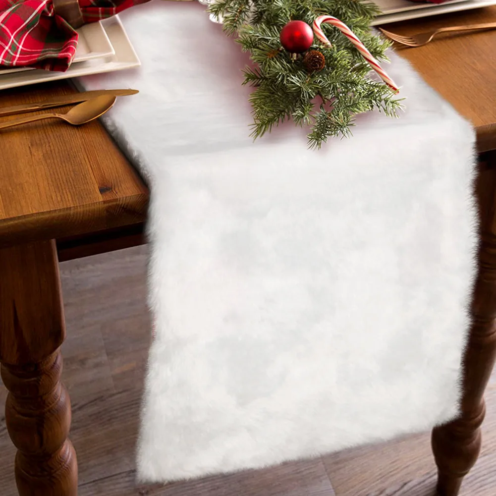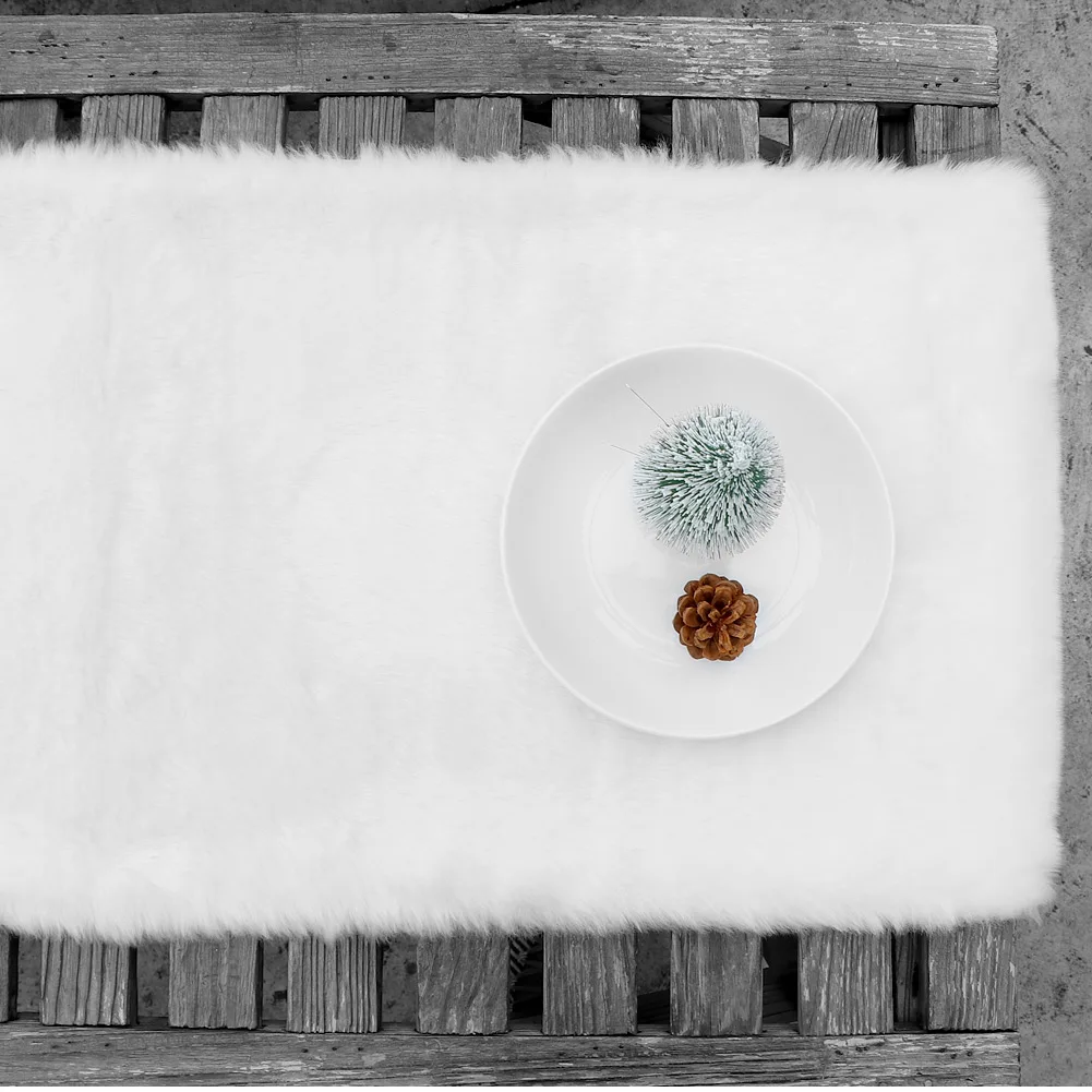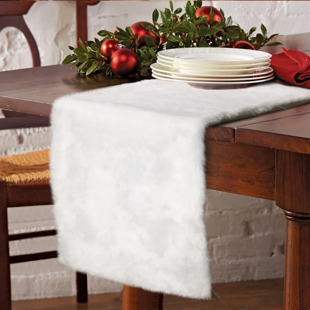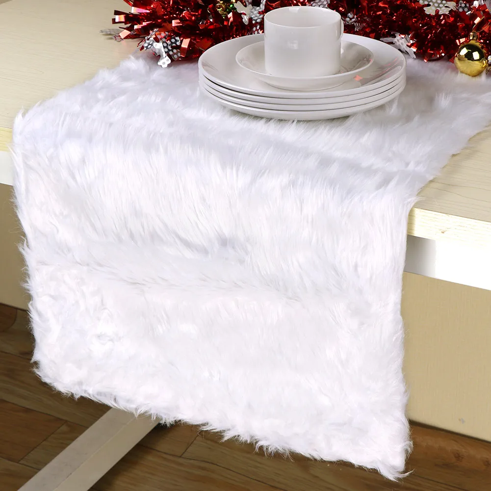 ❤Материал: Белый Рождественский Настольный бегун, изготовленный из 100% натурального и экологически чистого меха, толстый и мягкий станет отличным выбором для украшения дома.