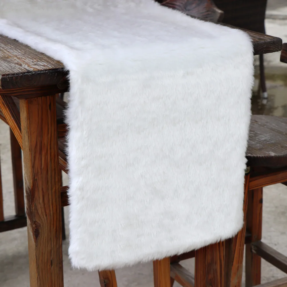 1 шт. настольный бегун из искусственного меха Цвет: белый Размер: 15*72 дюйма/38*183 см Материал: искусственный мех