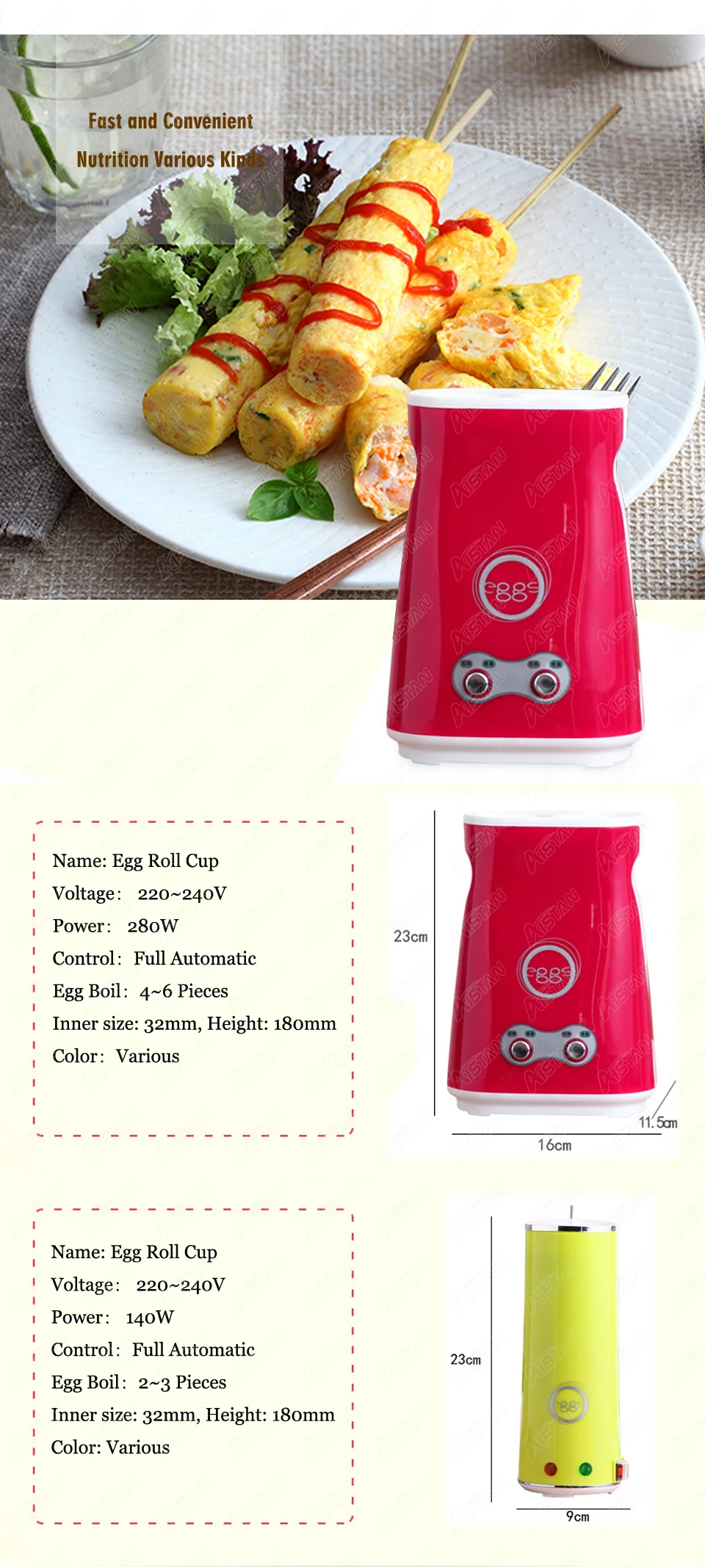 1. Антипригарная поверхность для приготовления пищи 2. Уникальная силиконовая ручка; Очистка-это ветерок 3. Камера для приготовления пищи: позволяет готовить до 4 маленьких яиц за одно время для каждого отверстия и имеет антипригарное покрытие, что позволяет легко чистить и управлять, также может быть отсоединено, легко моется и моется 4. Крутая сенсорная Поверхность: Уникальная силиконовая резиновая секция прибора является теплоизолятором для безопасной передачи. 5. Световой светильник s: когда мощность включена, красный светильник включится. Когда яйцо Мастер готов, зеленый светильник включится. 6. Переключение можно варить яйца, переключать два может гриль, легко управлять. 7. Яйцо мастер также может быть использован для приготовления с помощью шампуров 8. В комплект входит Чистящая щетка.
