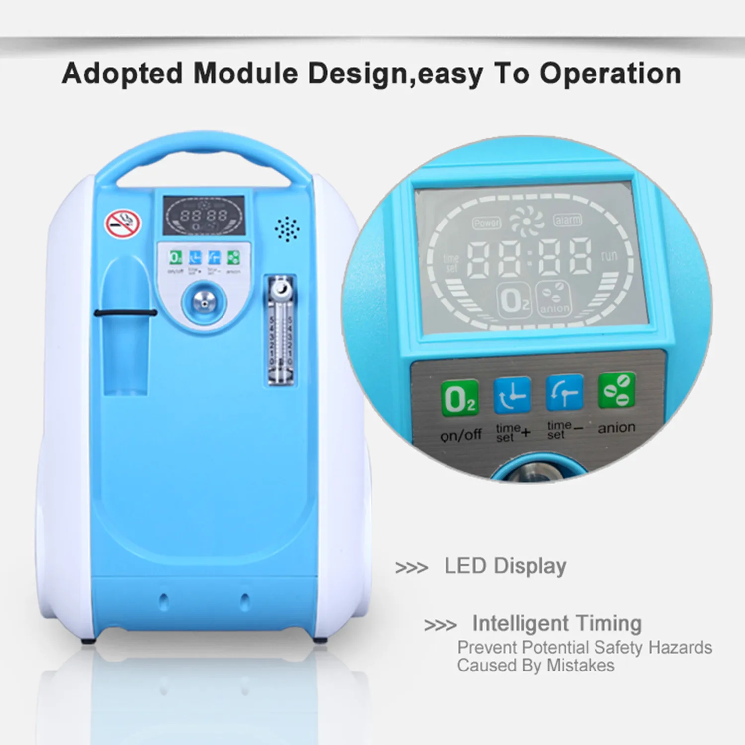 3. ЖК-панель, дисплей рабочего времени, дисплей потока кислорода.
