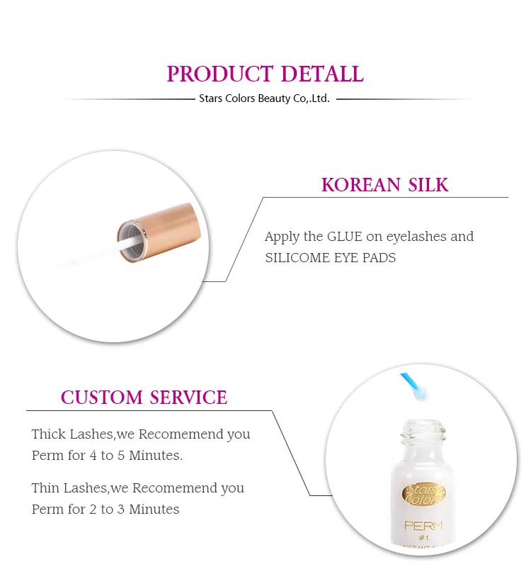4. #1 перминг агент: 1 бутылка (5 мл) Быстрый перминг материал #1, для: толстые ресницы, мы рекомендуем вам Пермь в течение 5-8 минут. Тонкие ресницы, мы рекомендуем вам Перми в течение 4-5 минут. Пожалуйста, Контролируйте время, в противном случае это повредит ваши ресницы!
