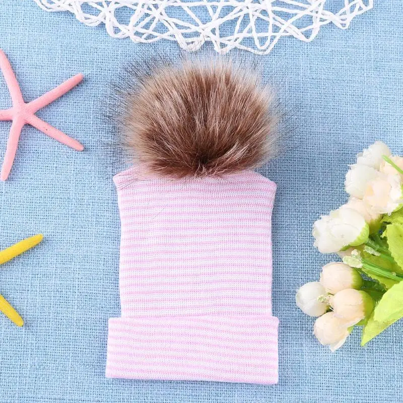 Вязаный для новорожденных шапка с помпоном для детей, зимние теплые шапки для мальчиков и девочек, милая хлопковая Младенческая шапочка