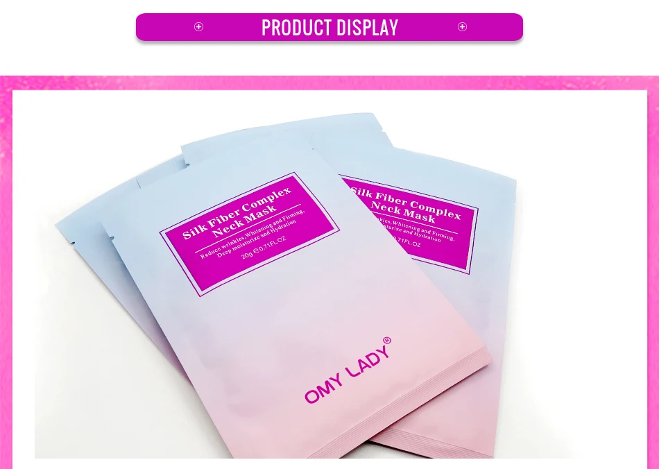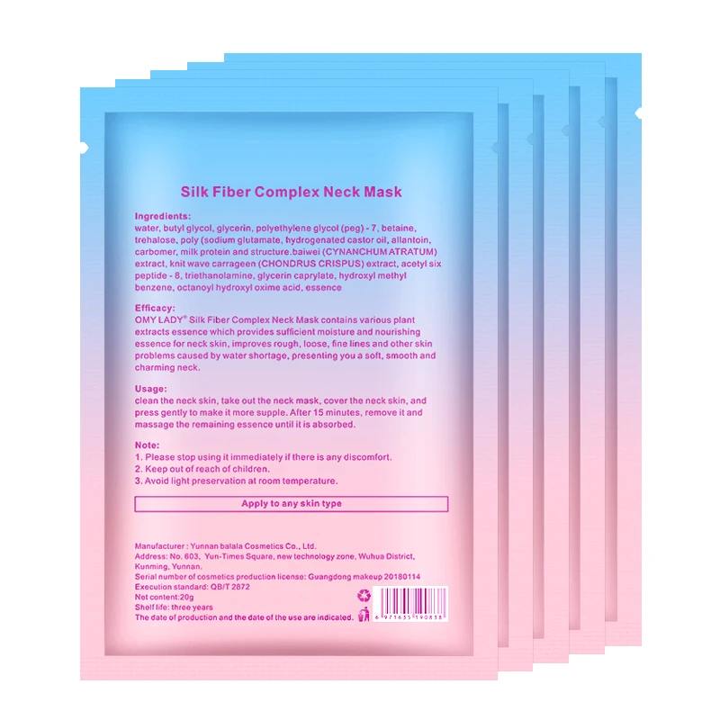 Сложная маска для шеи OMY LADY Silk Fiber содержит различные экстракты растений, которые обеспечивают достаточную влагу и питательную эссенцию для кожи шеи, улучшают шероховатость, свободные, тонкие линии и другие проблемы кожи, вызванные нехваткой воды, подарите Вам мягкую, гладкую и очаровательную шею.