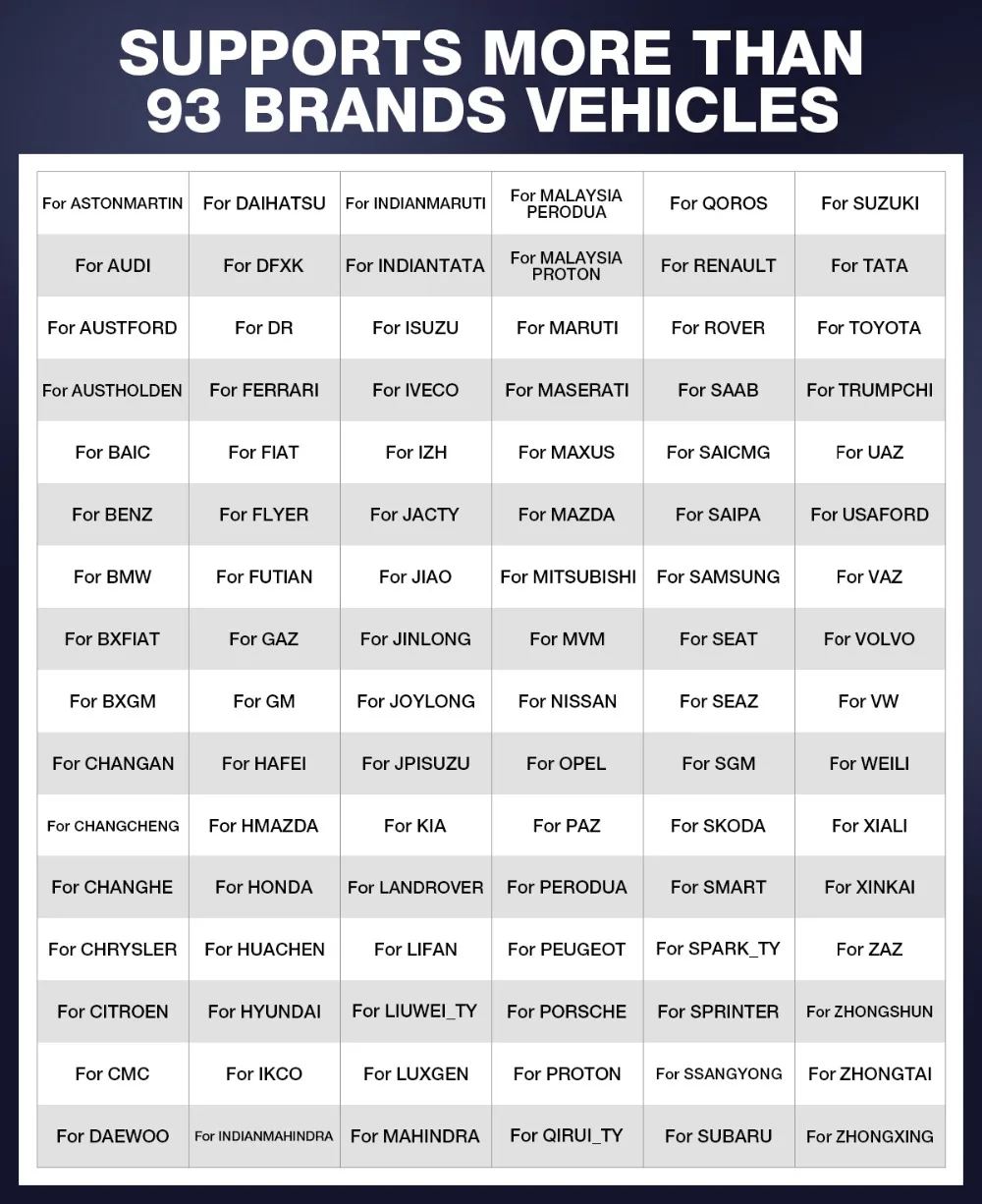 Например: двигатели/автоматическая передача/подушки безопасности/иммобилайзер/кодирование ключей/ABS/Круиз-контроль/инструменты/самонивелирующаяся система подвески s/сиденья/двери/ворота/угол рулевого управления/пневматическая подвеска/система кузова s/Электронный усилитель руля и двигателя/Усилитель руля/давление в шинах/датчик дождя s/система 4WD/стабилизатор/Интеллектуальная помощь при парковке/дверные Двигатели/звуковая система s/кондиционер/Tiptronic/анти кража/мягкий верх/Выравнивание фары/Центральная блокировка/автоматическая муфта/Сброс DPF/электрические окна/программирование PIP/Подогрев заднего окна/Ксеноновые фары/протирание/нагреватель топлива/коробка передачи/сиденье сброс памяти/срок службы масла/раздвижные двери/Электронная дроссельная заслонка/навигационная система/датчик опрокидывания/Круизный контроль/многофункциональные функции.