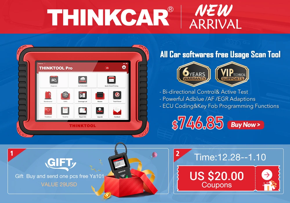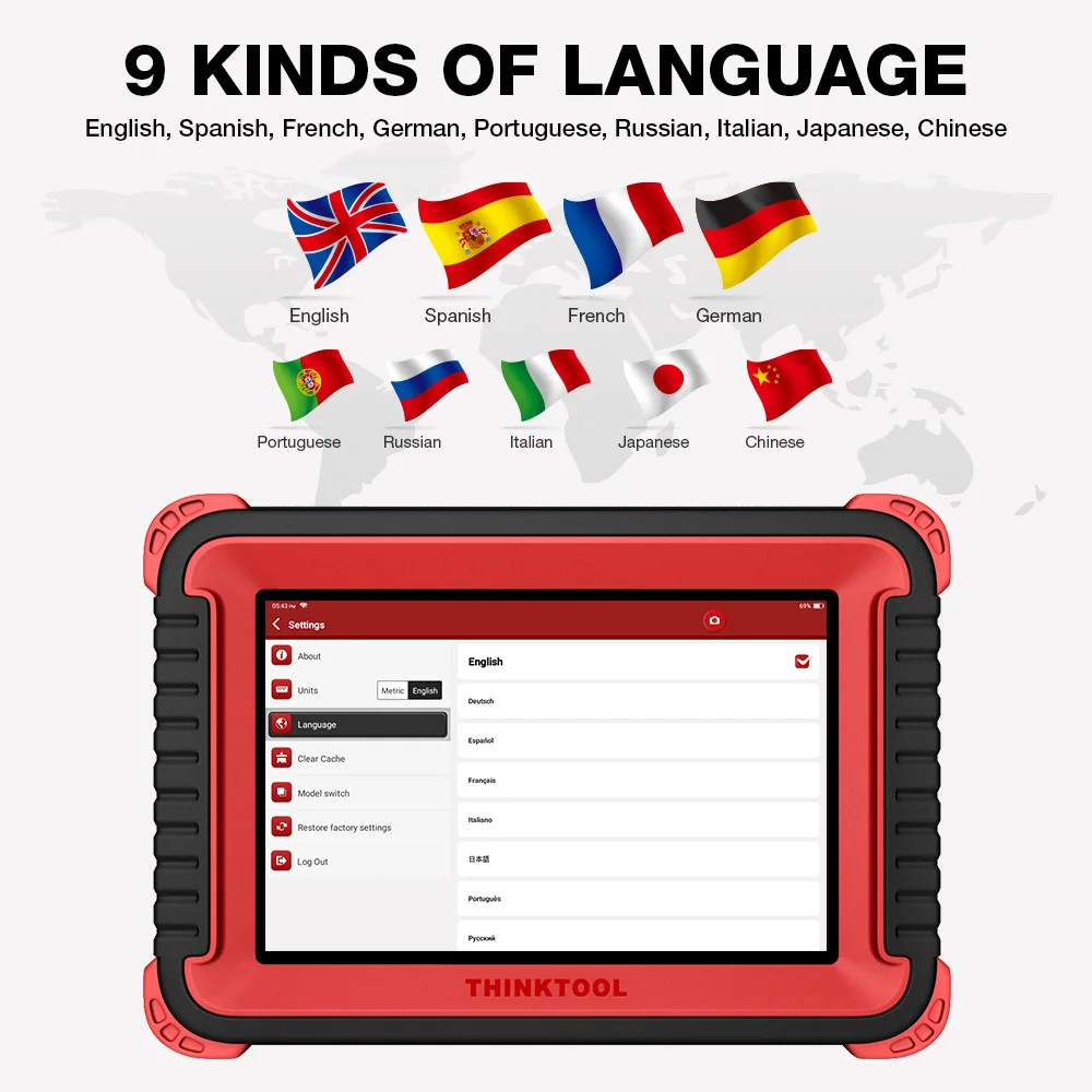 Для всесторонней диагностики автомобиля, сканер Thinktool Pro может считывать DTCs и потоки данных, выполнять активный тест, кодирование для всех систем.