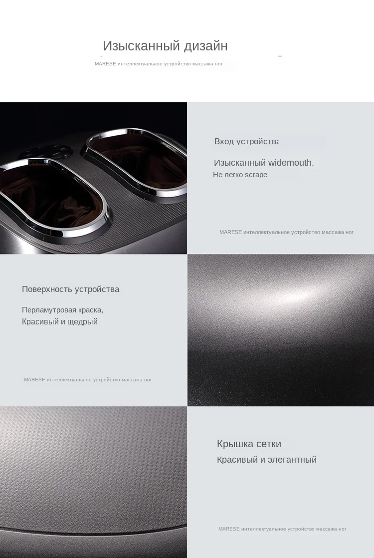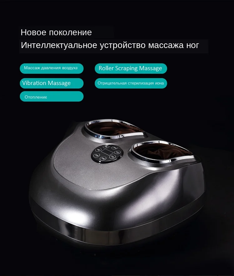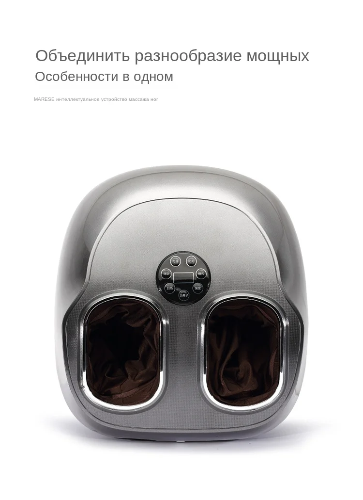 1. Вибрационный массаж: инновационная технология массажа, высокочастотный Вибрационный массаж ног и икр, полностью расслабляет усталость мышц! 2. Воздушный компрессионный массаж: массаж стопы воздушным сжатием, стимулирует акупунктурные точки, снимает усталость мышц! 3. Роликовый массаж: роликовый шиацу массирует стопу, стимулирует кровообращение, стимулирует акупунктурные точки, снимает усталость и помогает сну. 4. инфракрасное нагревание теплой ноги: подходит для теплых и активных каналов и боковых веток, горячее сжимает кровеносные сосуды, небольшое количество тепла способствует циркуляции крови, а также предотвращает Термическое Сопротивление через проходы и ключицы. 5. Режим: 3 режима массажа на выбор; 6. Прочность: обеспечивает 3 уровень силы массажа. 7. Гигиена: массажер для ног может генерировать отрицательные ионы, очищать внутренний воздух машины и устранять запах.