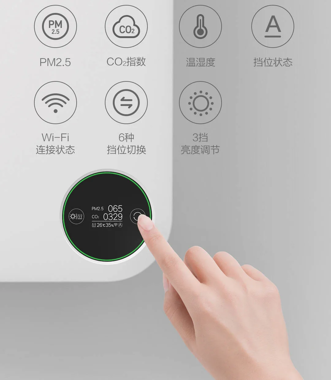 Большой объем воздуха 160 м³ / ч создает небольшое положительное давление в комнате, эффективно разряжая разбавленный и выделяя формальдегид, диоксид углерода, PM2,5 и т. Д. В комнате