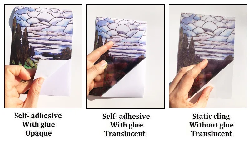 Когда вы размещаете заказ, пожалуйста, укажите, какой материал вам нравится, в противном случае мы отправим вам статическое прилипание (без клея), полупрозрачный материал.