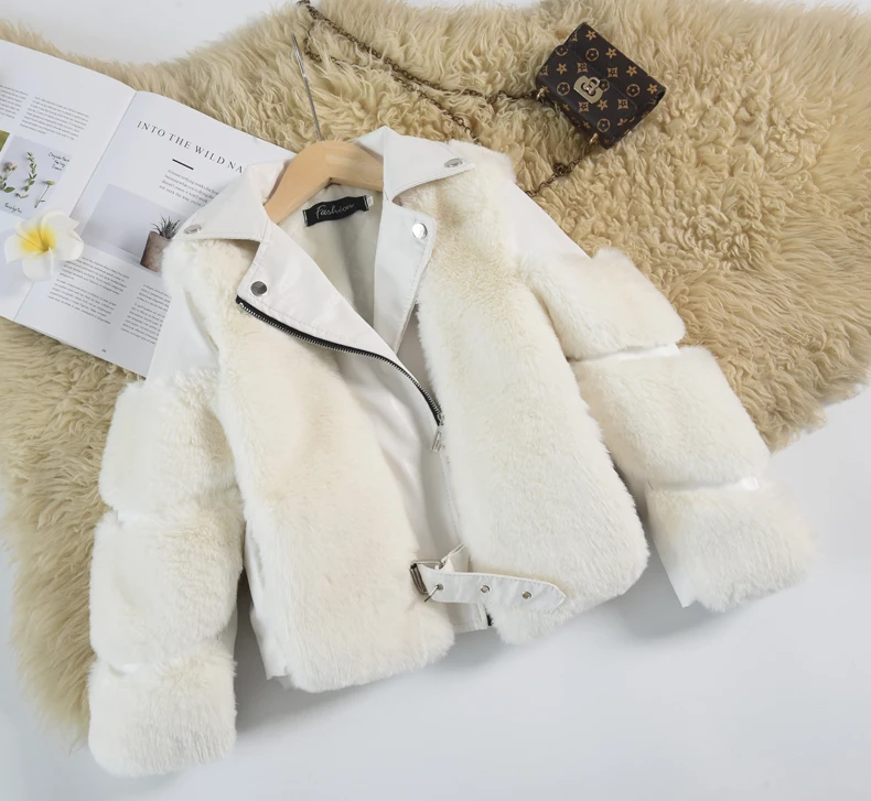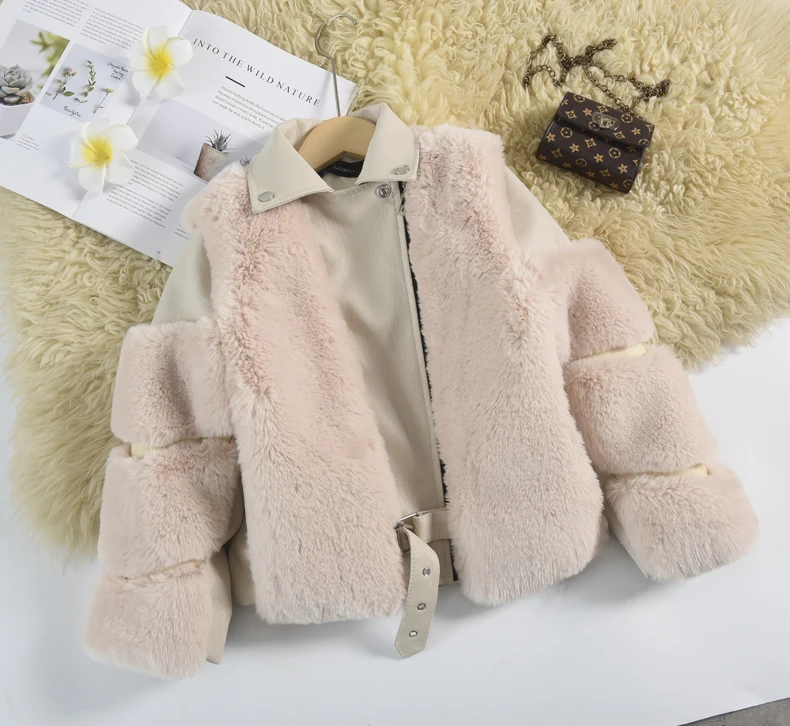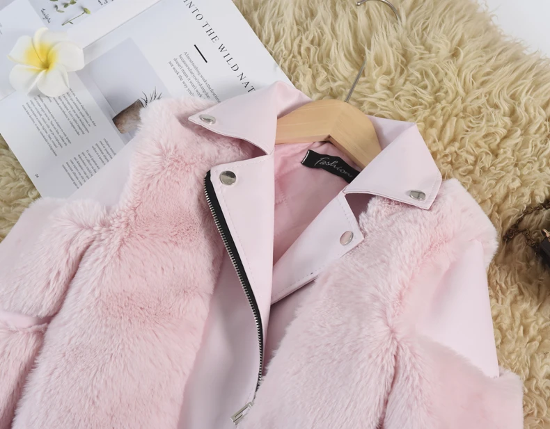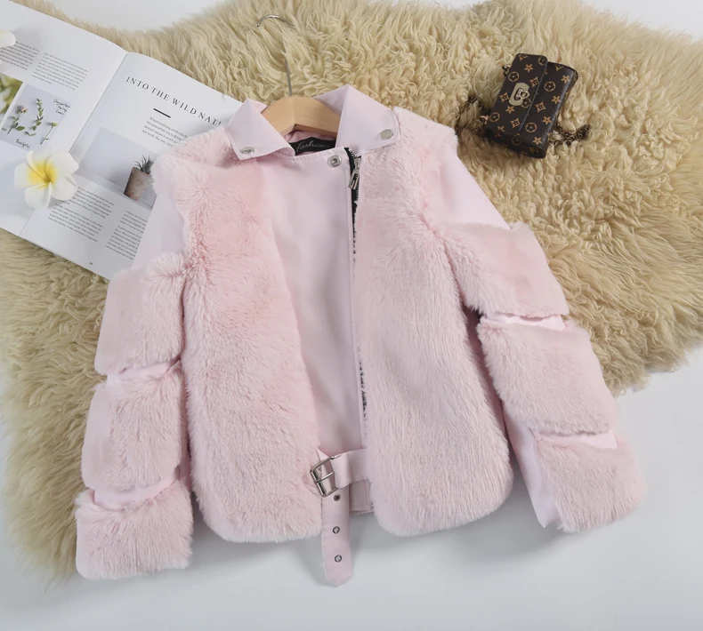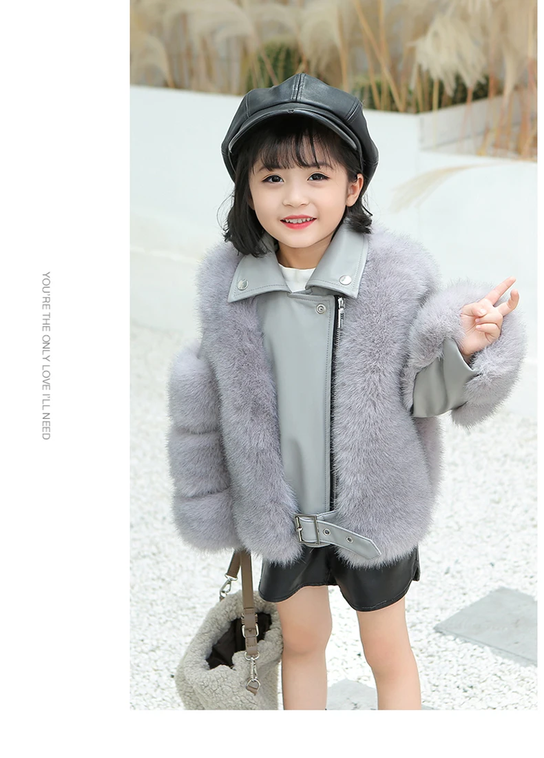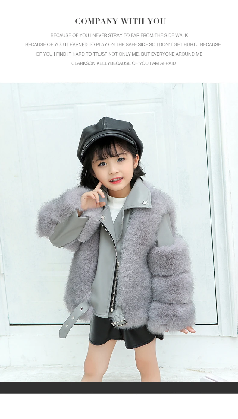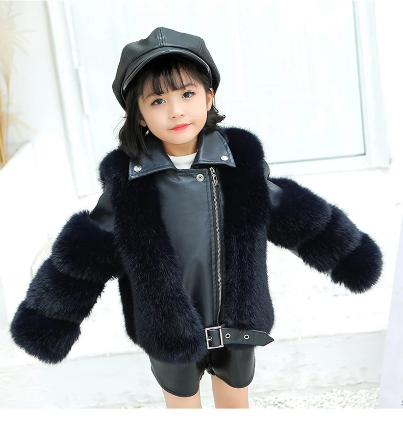 Куртка с искусственным мехом для девочек; Модное кожаное Детское пальто с длинными рукавами; Сезон осень-зима; Детская одежда с искусственным мехом для девочек