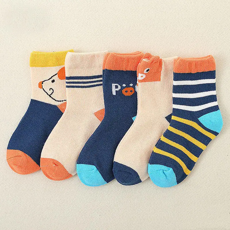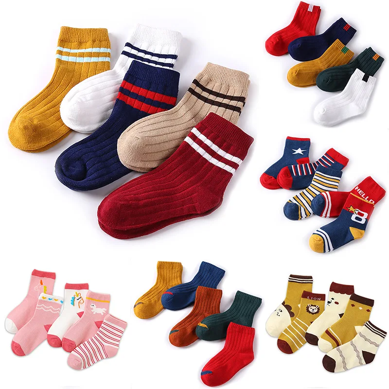 M MISM/модные разноцветные хлопковые носки средней длины, 5 пар корейские Kawaii хлопчатобумажные забавные носки, комплект с нашивкой, 3 размера, детские носки