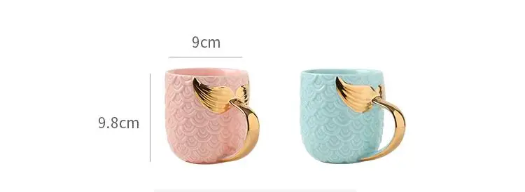 material:ceramic; size:9x9.8cm; capacity:420ML; suit:coffee,tea,water...; package:safe box style:mermaid