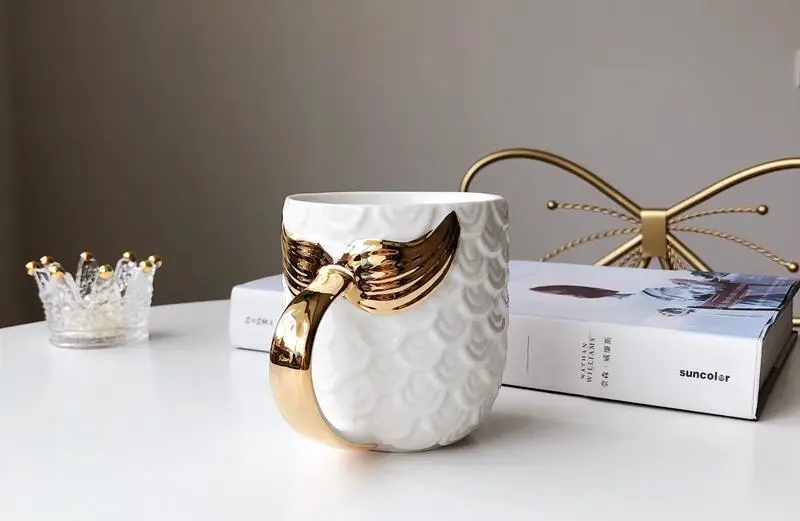 420ML Mermaid Coffee Mugs Beauty Glazed Tea Cups With Gold Handle Creative Ceramic Drinkware