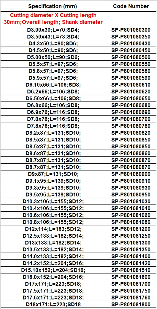 У нас есть ниже 8XD твердосплавные сверла в наличии.