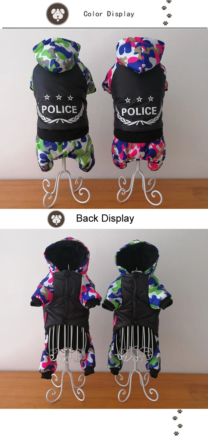 Pawstrip теплая зимняя куртка для собак Камуфляжный полицейский комбинезон для щенка утолщенная Одежда для собак с четырьмя ножками одежда для домашних животных Pomeranian