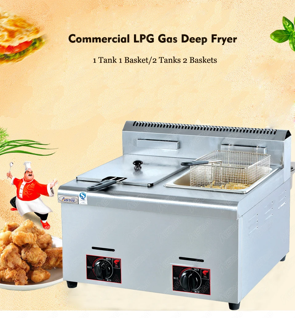 Коммерческая газовая фритюрница lgp для картофельных чипсов, курица, жареное масло, фритюрница с 1 или 2 резервуарами из нержавеющей стали