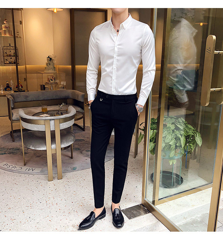 2021 Новая мужская Однотонная рубашка в повседневном деловом стиле