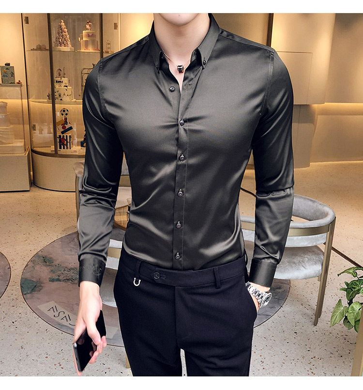 Мужская Золотая Бархатная Осенняя рубашка в Корейском стиле